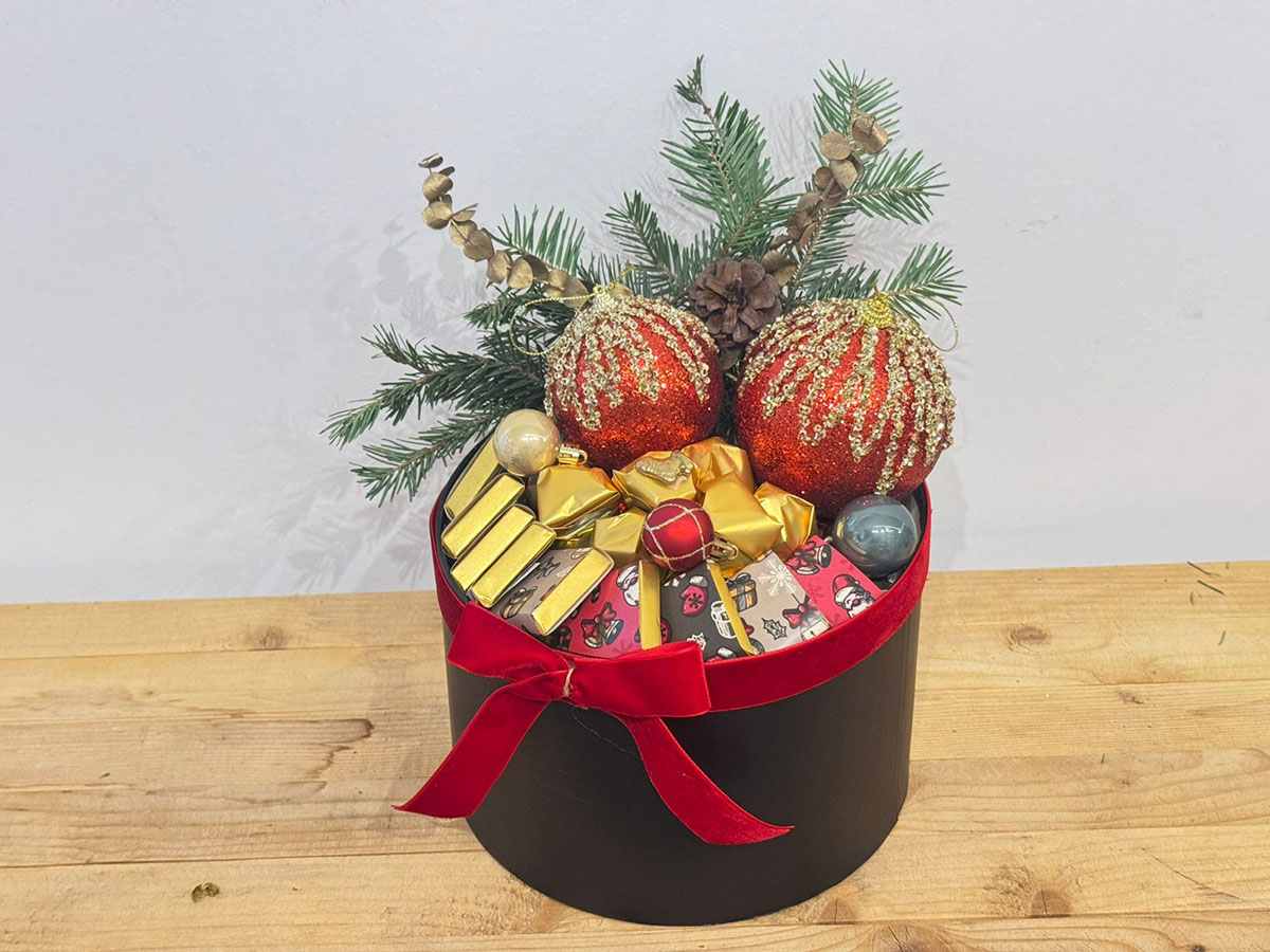 The Jolly Christmas Box is the perfect item for your home during the holiday season for guests to indulge in, or can be the perfect home visit gift! This box includes a variety of belgium chocolate pieces **300g to 350g**, adorned with beautiful Christmas decor