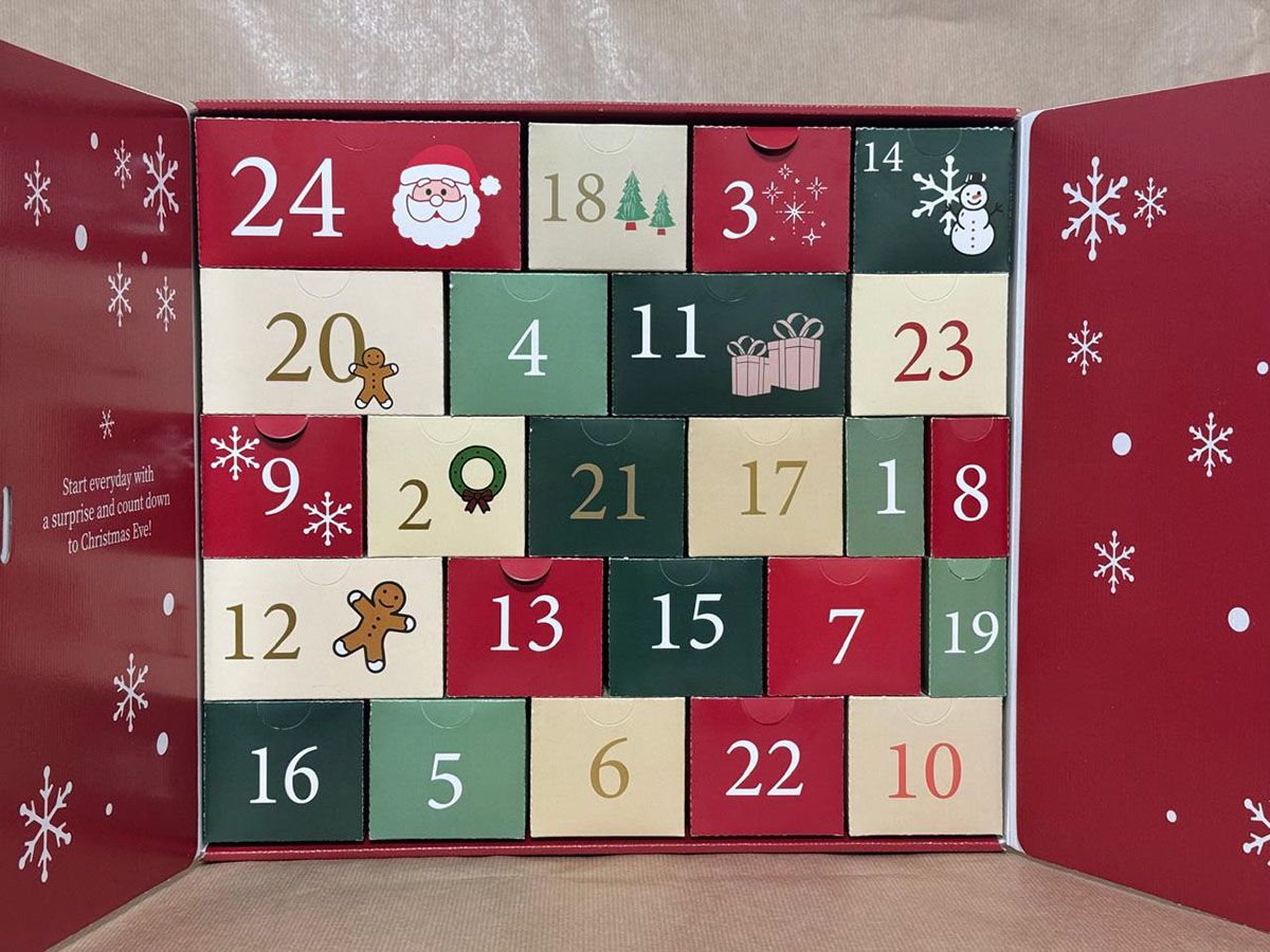 Countdown to Christmas Magic! Unwrap 24 days of festive surprises with our enchanting Advent Calendar! Each window hides a delightful mix of rich Christmas chocolates, hot chocolate, colorful candies, playful toys such as play-dough, and charming Christmas-themed trinkets such as paper ornaments! Perfect for kids aged 2 to 12, it turns every day into a moment of joy and wonders as you countown to Christmas!