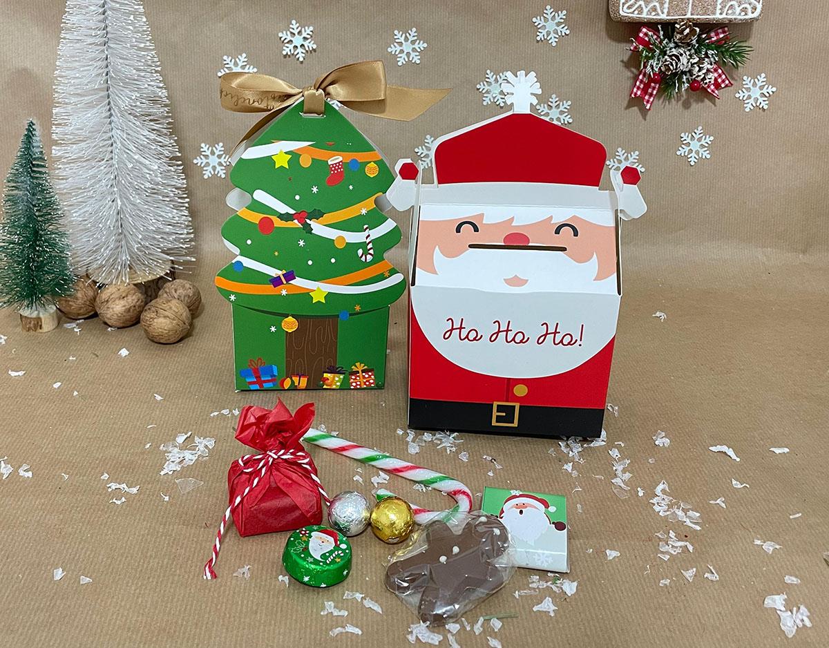 Enjoy the holiday season with the sweetest mini giftbox! This Crunchies Box includes an assortment of christmas chocolate pieces and one candy cane